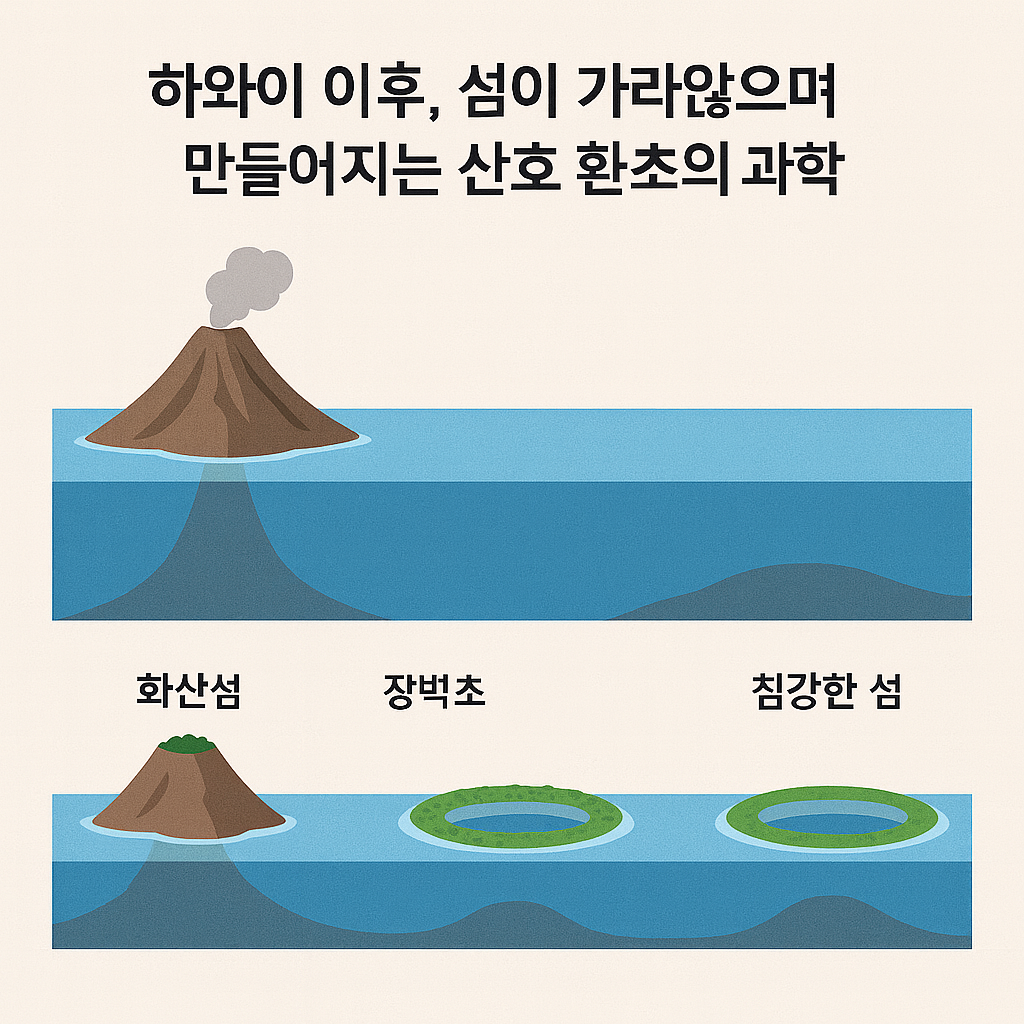 하와이 화산섬이 어떻게 가라앉으며 산호 환초로 변하는지, 그 과학적 과정과 다윈의 환초 이론, 그리고 기후 변화로 인한 위협과 보존 필요성까지 깊이 있게 살펴봅니다.