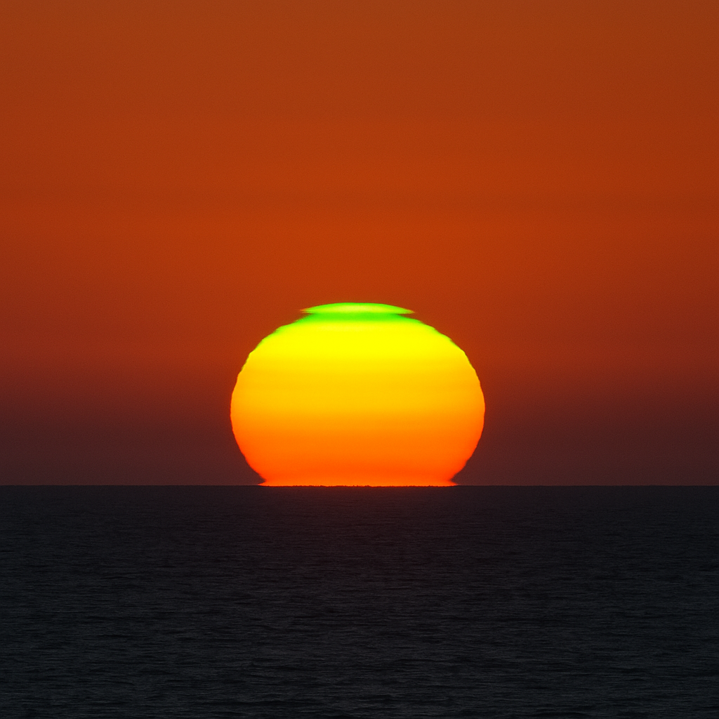 그린 플래시의 발생 원리를 이해하려면 대기 굴절과 파장 분산 현상을 알아야 합니다.